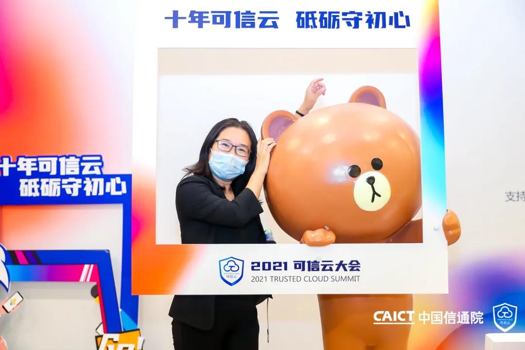 拍照打卡处也聚集着可信云的粉丝们争先合影,布朗熊与可妮兔也让来宾们的美好回忆里又增添了一笔色彩。